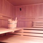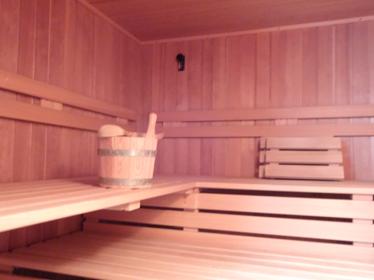 Im Tiefgeschoss befindet sich ein Wellnessbereich mit Sauna, Badewanne, Dusche und einem Ruheraum mit Tageslicht.