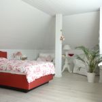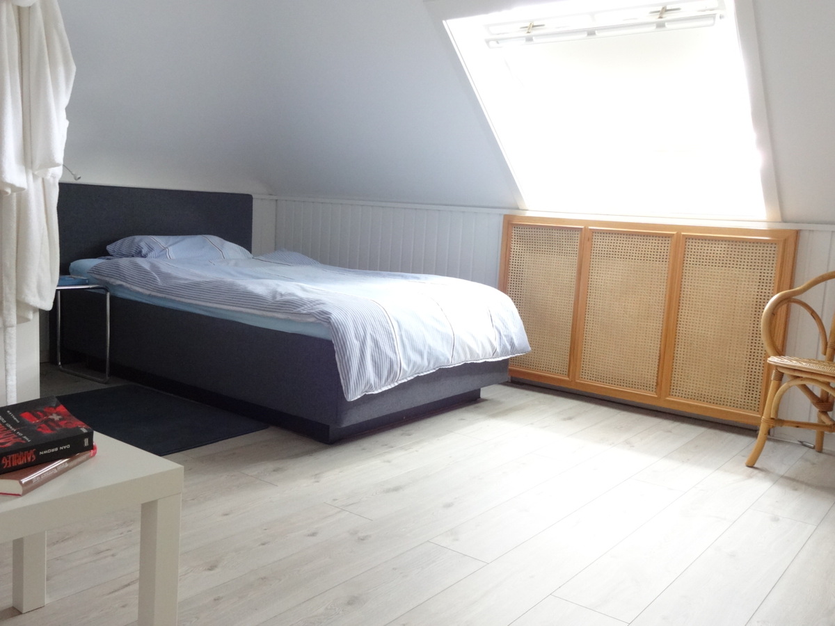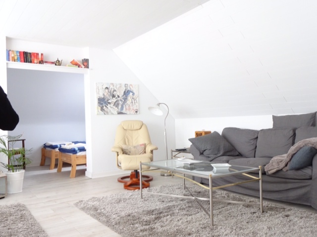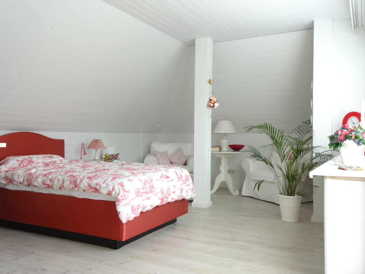 Das Obergeschoss lässt sich auch als eigenständige Wohnung nutzen. Auf insgesamt 110m² Wohnfläche befinden sich vier Wohn-/Schlafräume so wie eine weitere Küche und ein helles Duschbad. Vom Wohnzimmer gelangt man auf eine großzügige Loggia, ausgestattet mit einer elektrische Markise.