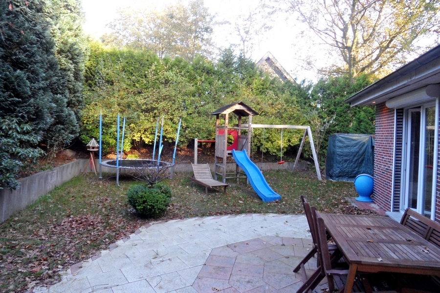 Vorzugsweise zum 01.01.2015 soll diese ca. 136m² große 4,5-Zi.-Wohnung neu vermietet werden. Sie befindet sich im Erdgeschoss eines ca. 1968 errichteten Zweifamilienhauses, das im Jahr 2003 durch einen Anbau erweitert wurde. Die Lage ist zentral und dennoch charmant, nur wenige Gehminuten vom Poppenbüttler Markt entfernt. Haus und Wohnung wurden kürzlich (2013) umfangreich saniert und modernisiert. Alle Räume sind sehr gut belichtet. Die Küche bietet ausreichend Platz für einen Esstisch mit 4-6 Stühlen. Alle Wohnräume sind mit Parkettboden ausgestattet. Besonders gemütlich ist der Kaminofen (Buderus) im geräumigen Wohnzimmer. Hinter dem Haus liegt der kleine, gut eingewachsene und sichtgeschützte Garten mit Terrasse. Für die Kinder gibt es hier ein Spielhaus und eine Kinderschaukel mit einem Kletterturm. Ein offene Kfz-Stellplatz ist im Mietpreis enthalten. Der Keller bietet eine Nutzfläche von ca. 30m². Hier ist auch ein Platz für Waschmaschine und Trockner vorgesehen. Ein Energiepass ist beantragt. Zur Wohnungsausstattung gehören:
