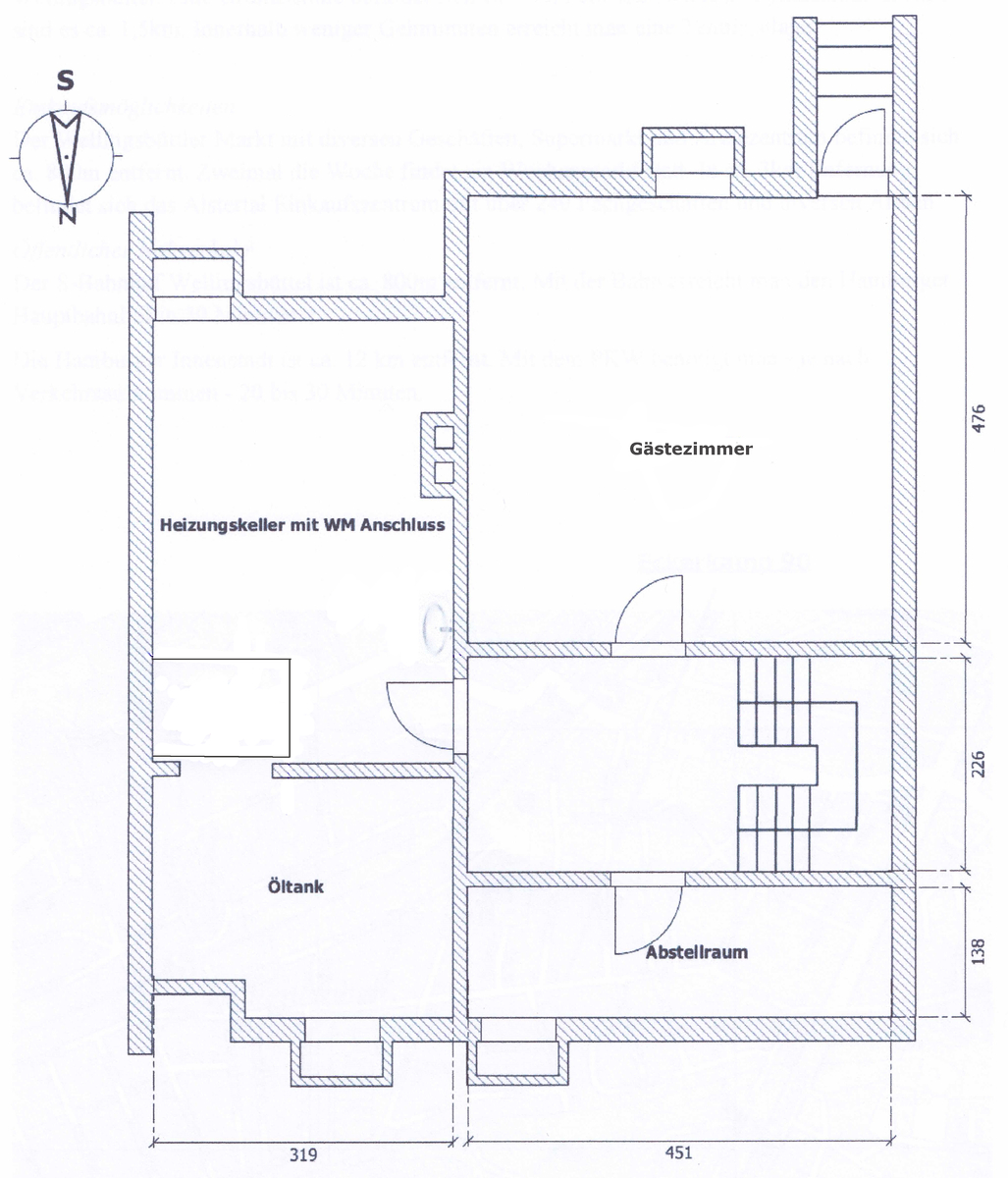 Die angebotene Immobilie befindet sich in einer ruhigen Wohnstraße im beliebten Stadtteil HH-Wellingsbüttel. Eine Grundschule befindet sich ca. 500m entfernt, bis zum Gymnasium Grotmoor sind es ca. 1,5km. Innerhalb weniger Gehminuten erreicht man eine Tennisanlage.