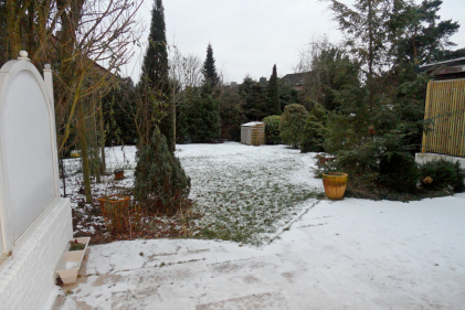 Das helle, ca. 300m² große Grundstück ist nach Süden orientiert.