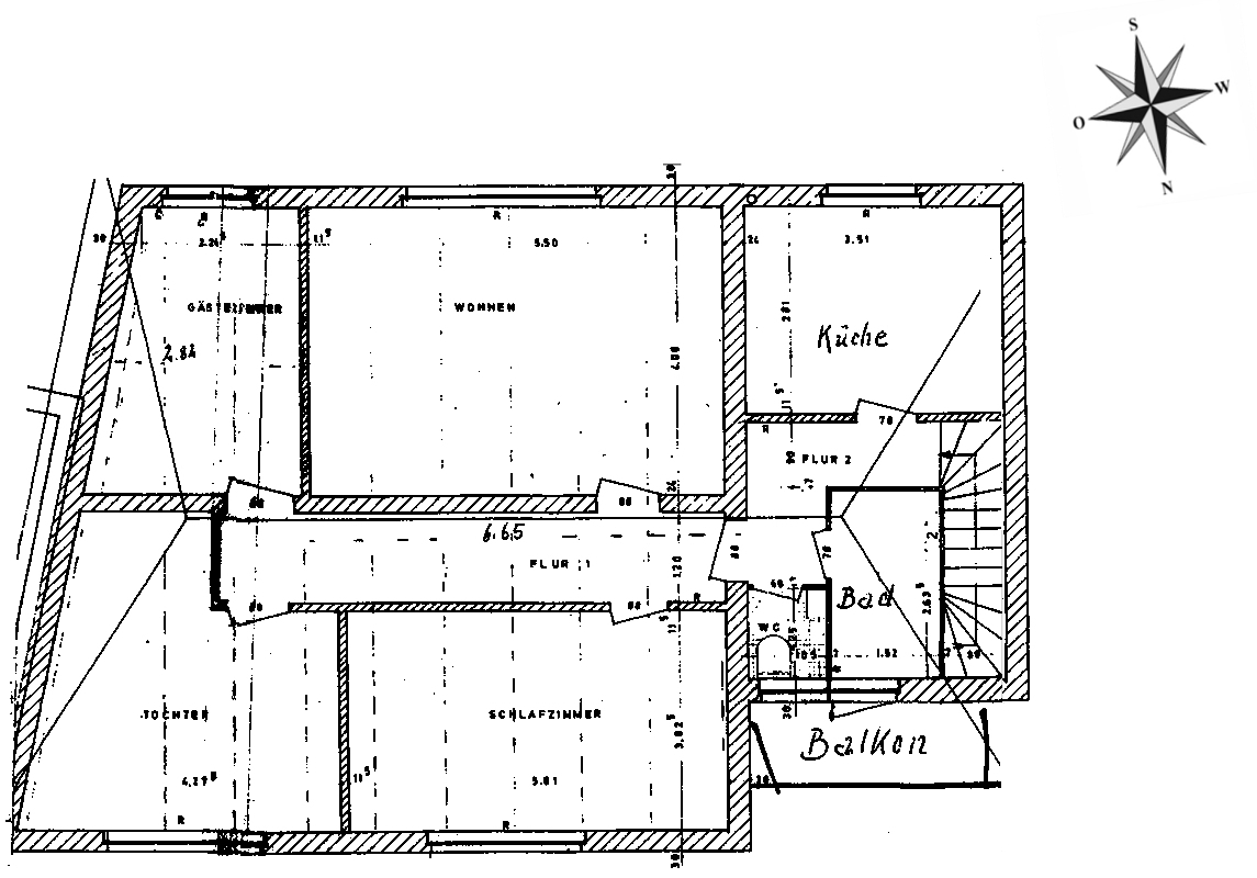Ideal für 2-3 Personen: Zur unbefristeten Vermietung (Mindestlaufzeit von 3 Jahren) angeboten wird eine helle, bezugsfertige Wohnung mit 4 Wohn-/Schlafzimmern, Küche, Duschbad mit Waschmaschinenanschluß, seperatem WC mit Fenster, Flur und Balkon, insgesamt ca. 86m² Wohnfläche, gelegen im 1. OG (ohne Dachschrägen) eines 1967 erbauten Doppelhauses.