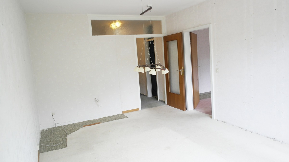 Die Wohnung bedarf einer Modernisierung. Die Einbauküche wurde bereits entfernt, das Bad ist funktionsfähig, entspricht aber nicht mehr dem heutigen Zeitgeist. Die Bodenbeläge sind abgenutzt/verfärbt und Malerarbeiten an Wänden und Decken sind erforderlich.