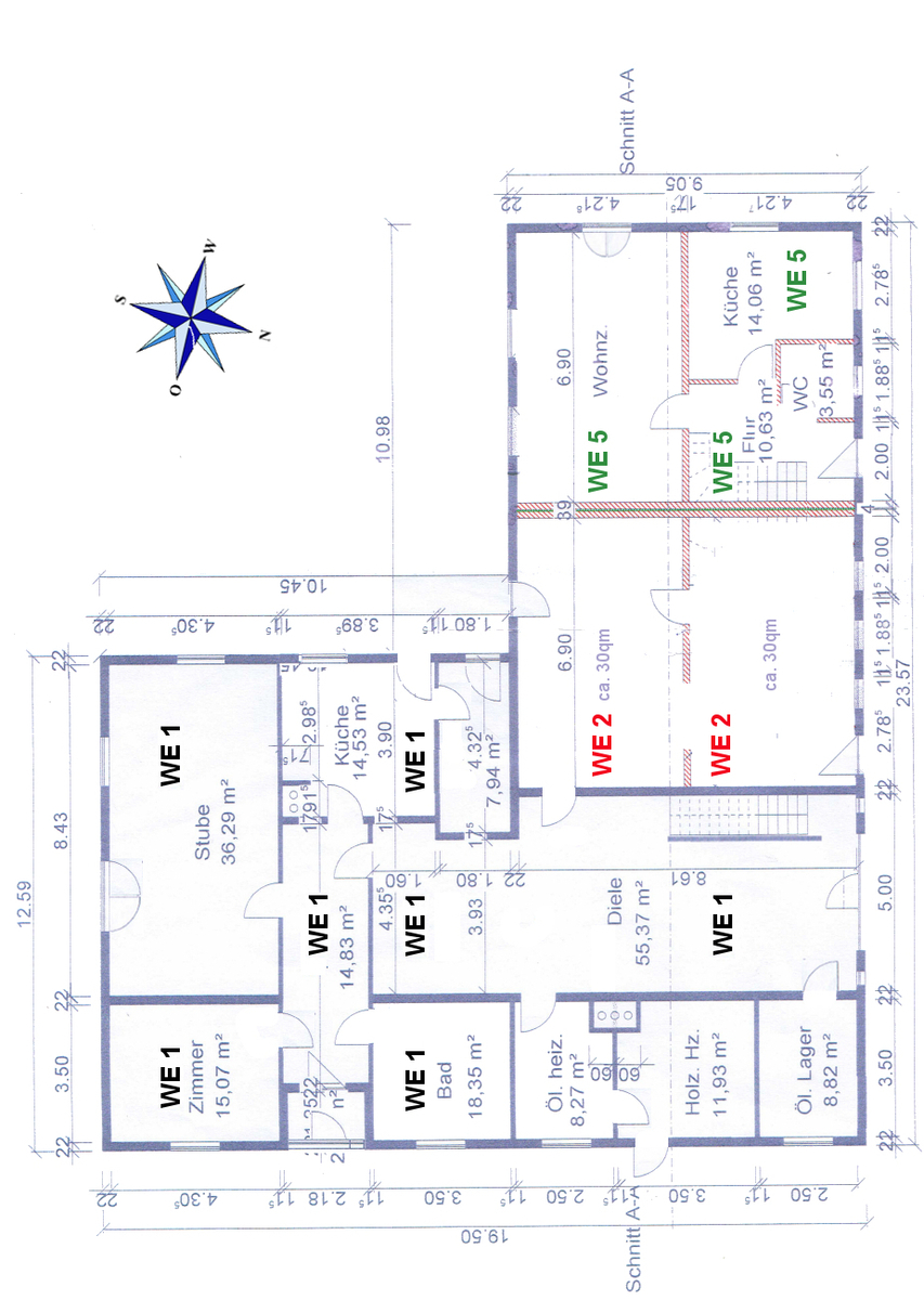 - ca. 50m² Wfl. zuzügl. 30m² wohnlich nutzbarer Dachboden (ohne Grundriss)