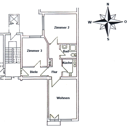 3 Zi.-Altbau-Eigentumswohnung mit Süd-Balkon, Küche, und Bad mit Badewanne. Die Wohnung liegt im 3. OG. des Vorderhauses und ist bequem mit einem Lift erreichbar.