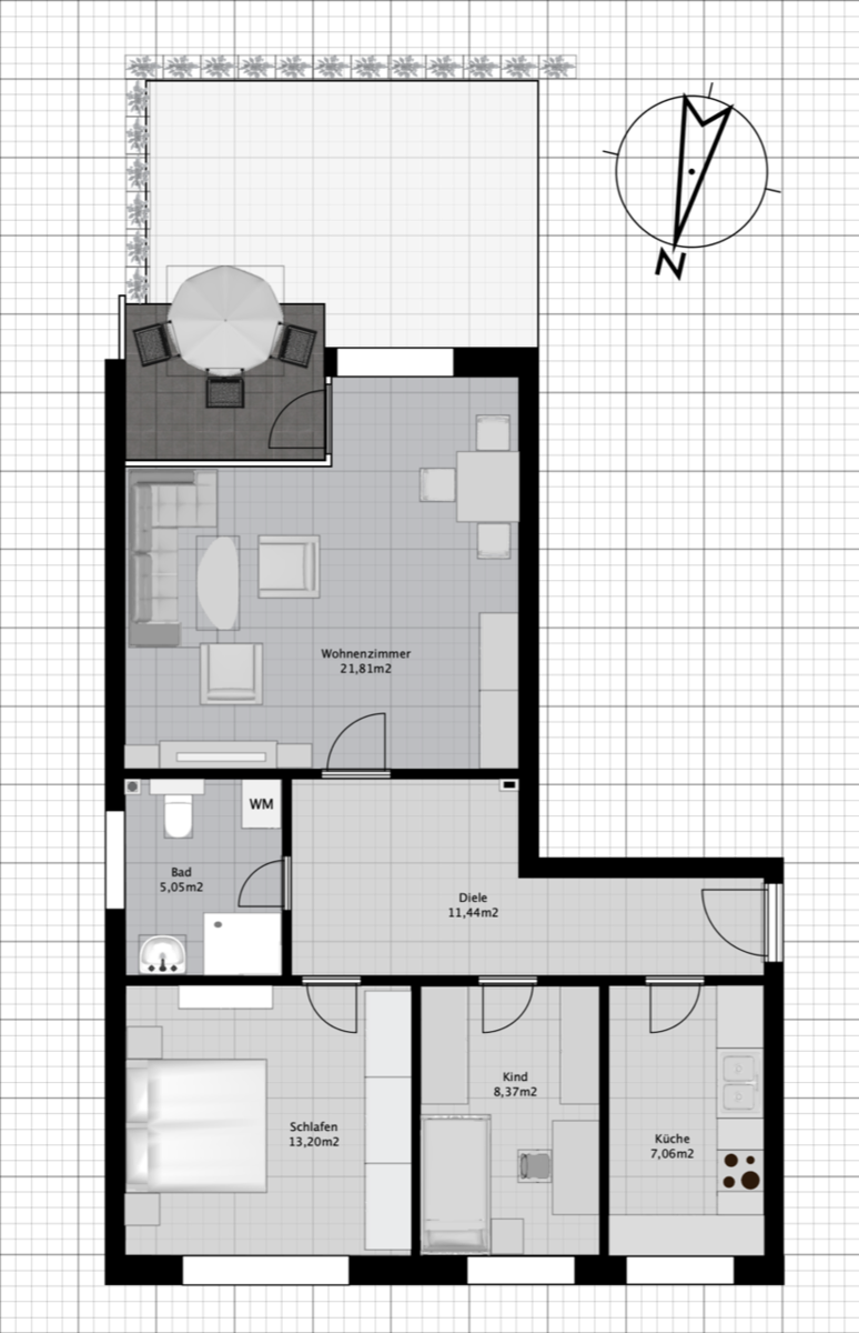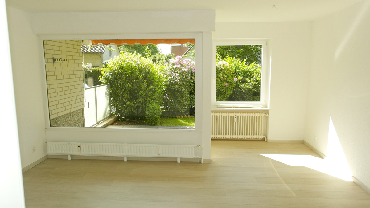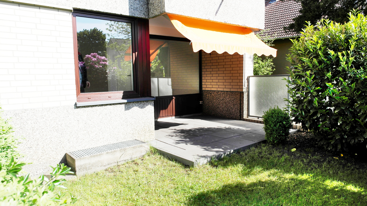 2,5 Zi.Eigentumswohnung mit teilüberdachter Terrasse und kleinem Garten in sonniger und ruhiger Südlage. Die Pflege der blickdichten Hecke erfolgt durch einen