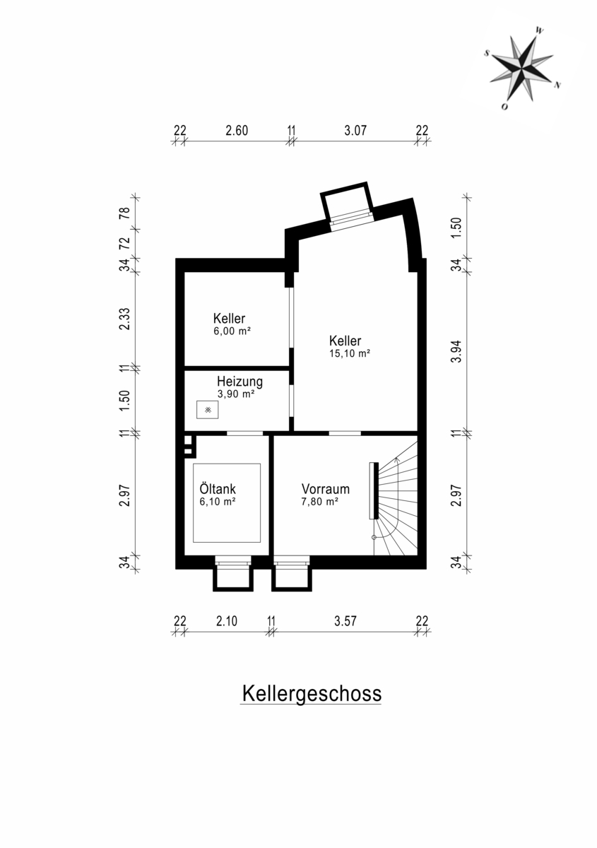 Im ca. 40m² großen Vollkeller befindet sich der Heizungsraum mit zeitgemäßer Buderus Ölzentralheizung, ein Vorratsraum sowie ein ca. 25m² großer Hobbyraum.