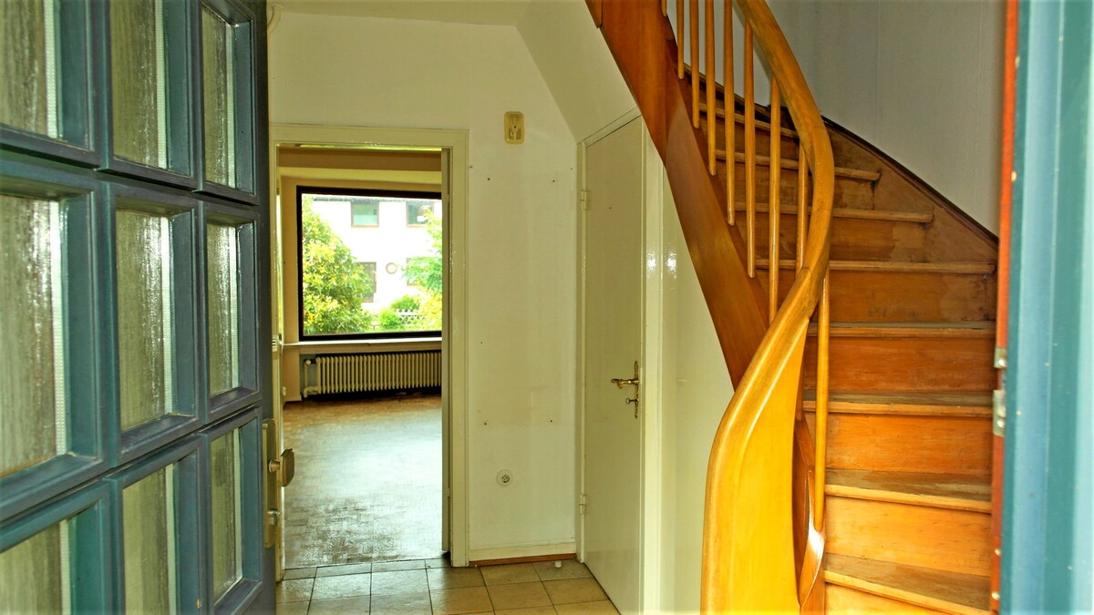 Zum Verkauf steht ein renovierungsbedürftiges Reihenmittelhaus.