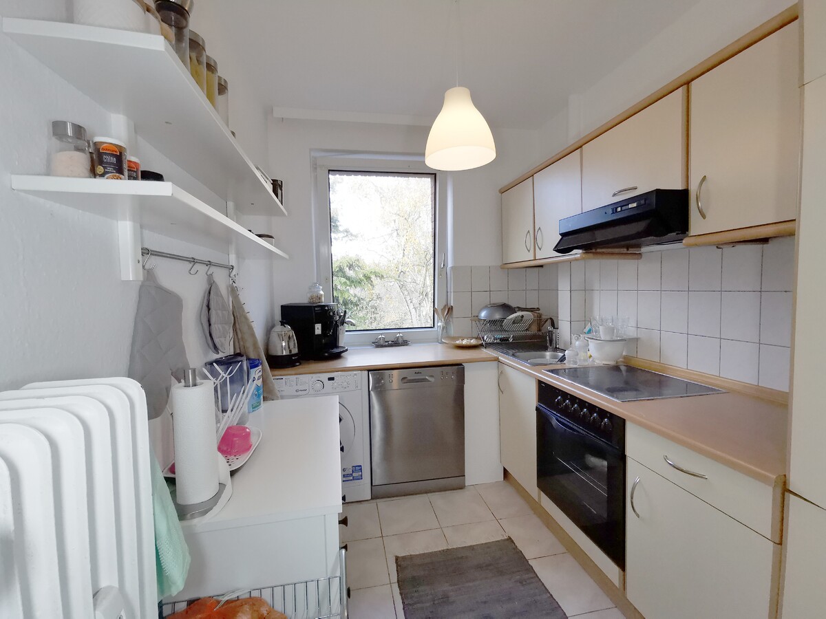 Alle Wohnräume sind mit Laminat in Buchenoptik ausgelegt. Flur, Bad und Küche sind mit hellen Bodenfliesen ausgestattet. Die schöne Einbauküche komplett mit Backofen, Ceran-Kochfeld, Geschirrspüler und Kühlschrank lädt zum Kochen ein.