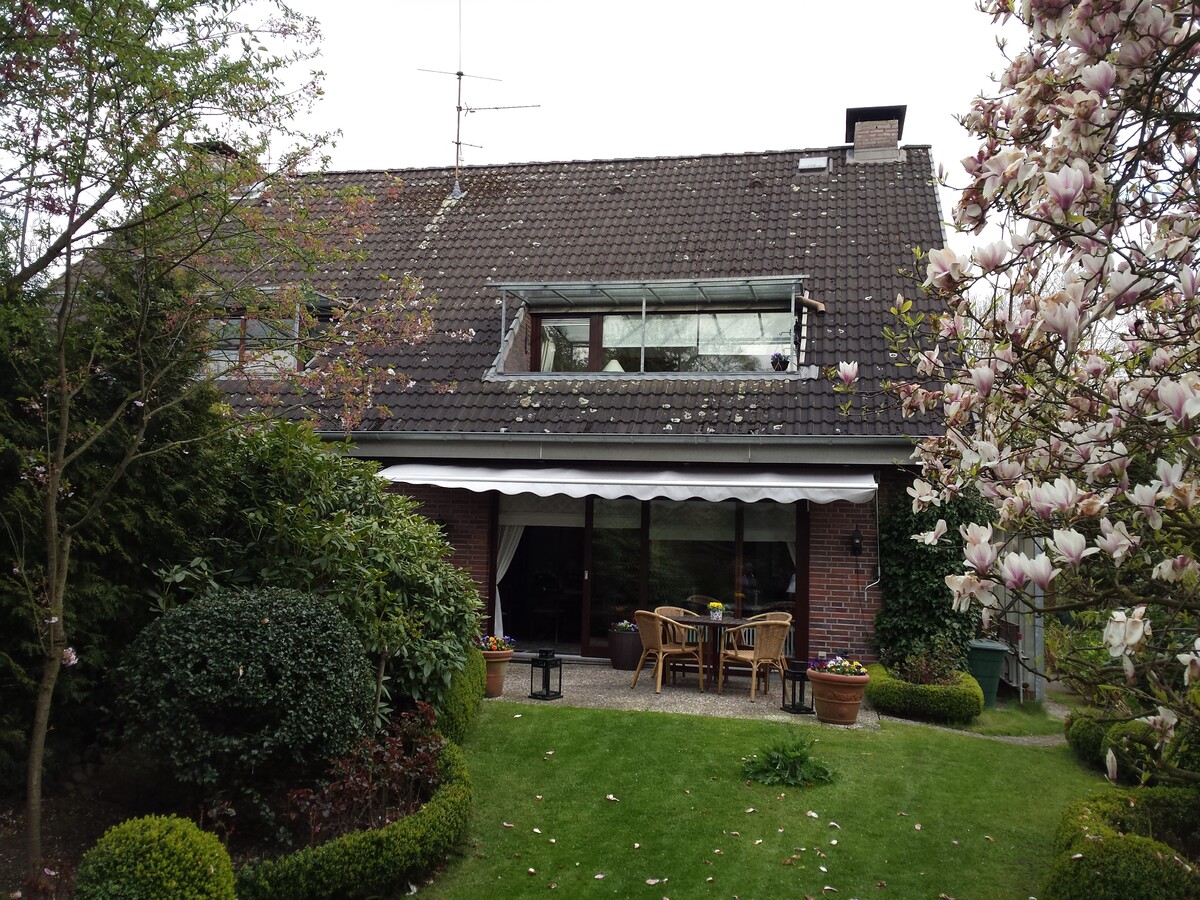 Die S-Bahnstation in Poppenbüttel (10km) und das benachbarte Alstertal-Einkaufszentrum mit ca. 240 Fachgeschäften erreicht man mit dem Auto bequem in 10-15 Minuten.