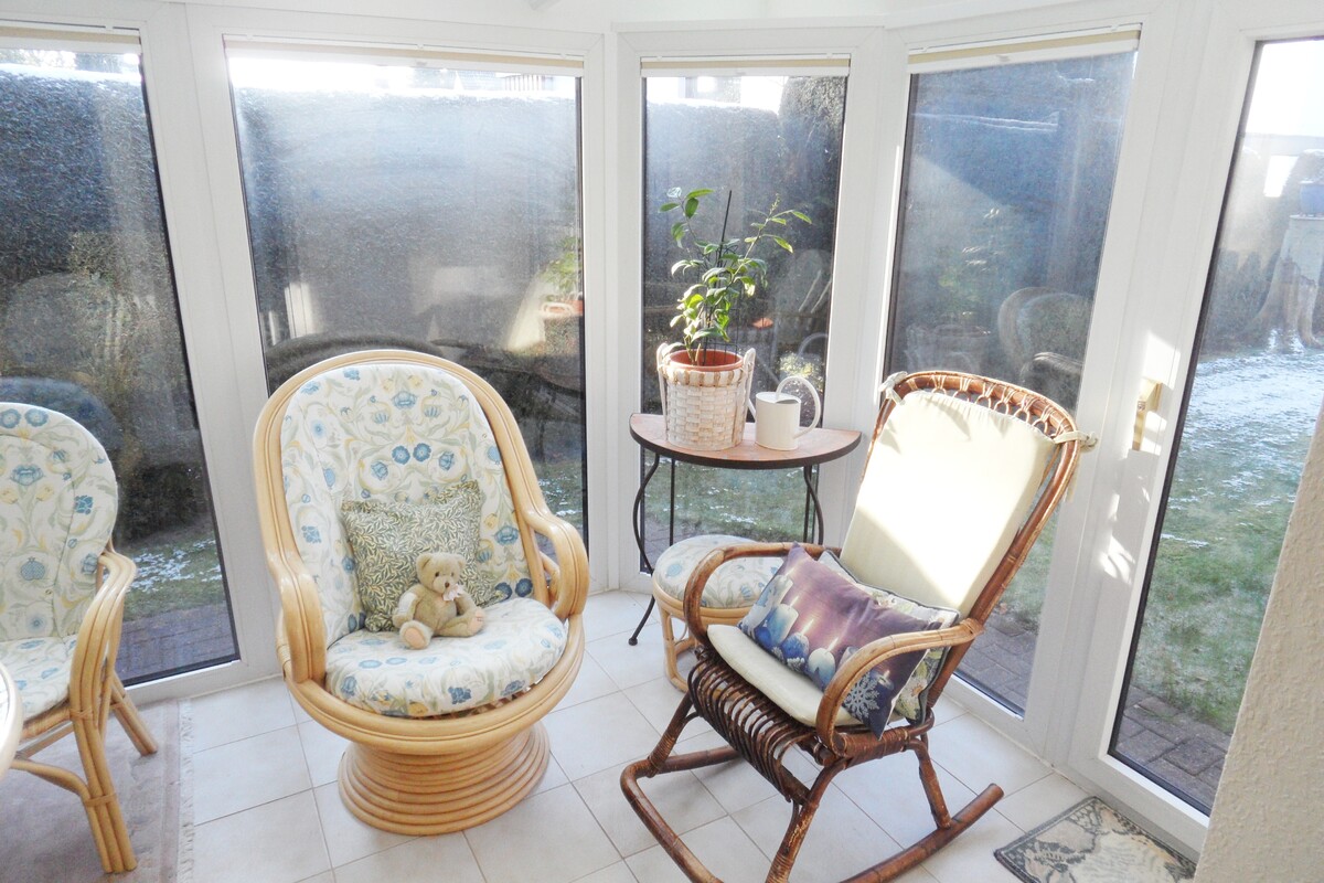 Der Bungalow verfügt über eine Brutto-Grundfläche von ca. 153m². Die Wohnfläche von ca. 125m² verteilt sich u.A. auf drei reelle Wohn-/Schlafzimmer, ein kleines Büro, eine sehr großzügige Wohn-/Essküche, und einem beheizbaren Wintergarten.