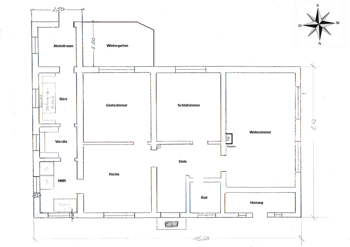 sollte das Bestandsgebäude wieder um den hintern Anbau (10,0 x 2,5 = 25m²)