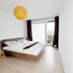 Im Schlafzimmer wurde ein hochwertiger heller Laminat-Boden verlegt; auch dieser Raum bietet direkten Zugang zum Süd-Balkon.