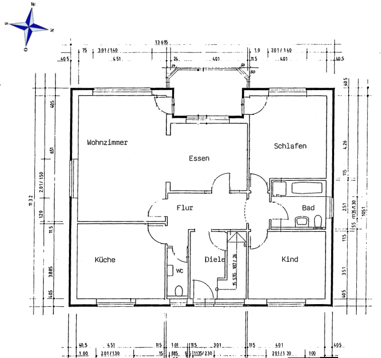 Die 112m² große 4 Zi.-Wohnung verfügt über ein Gäste-WC, ein Vollbad mit Wanne und Dusche und eine große Essküche. Die 8,80m² große Loggia ist nach Westen orientiert. Wohn- und Esszimmer sind miteinander verbunden, können aber mit geringem Aufwand getrennt werden. Ein freier Kaminanschluss ist vorhanden.