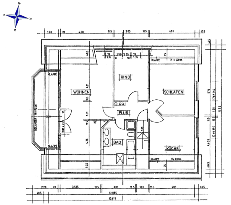 Die 98m² große 3 Zi-Wohnung mit 15,4m² großem Südbalkon, geräumiger Essküche und einem Vollbad mit Wanne und Dusche ist vermietet. Die Wohnung ist zweckmäßig mit Einbauküche, und in den Wohn-/Schlafräumen mit Teppichboden ausgestattet. Eine Falt-/Klapptreppe führt in den nicht ausgebauten Spitzboden.