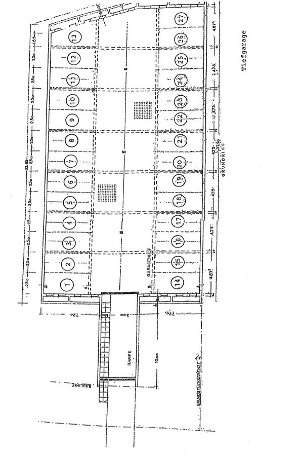 Das Garagentor wird wahlweise mit Schlüssel oder Funkfernbedienung bedient. Die PKW-Stellplätze entsprechen mit einer Breite von 2,50m den heutigen Anforderungen. Rangierfläche ist ausreichend vorhanden.