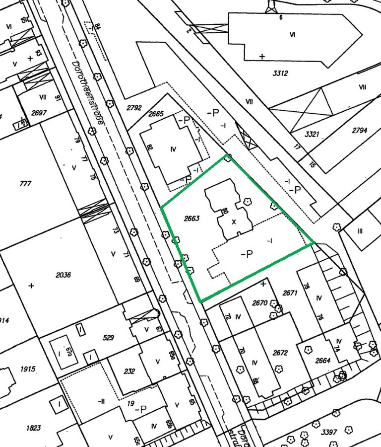 Das insgesamt ca. 2.250m² große Grundstück ist bebaut mit einem älteren Mehrfamilienhaus (80 WE) und der angebotenen Garagenanlage als Miteigentum, verbunden mit dem Sondereigentum an den Stellplätzen. Die Gebäude sind über keinen Zugang verbunden. Mieter sind vorwiegend Anwohner und Mitarbeiter aus den umgebenden Wohnhäusern und Büros.