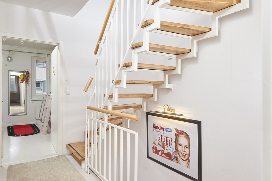 Die Treppe führt weiter in das 2. Obergeschoss mit einem geräumigen Schlafzimmer und dem verbundenen Arbeitszimmer. Bei Bedarf können die Zimmer leicht getrennt und jeweils mit einem separatem Zugang ausgestattet werden.