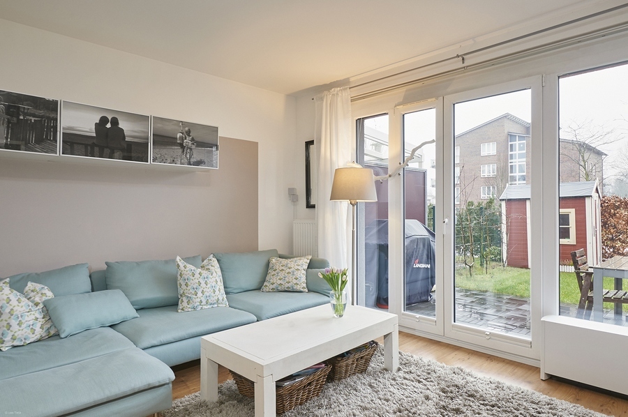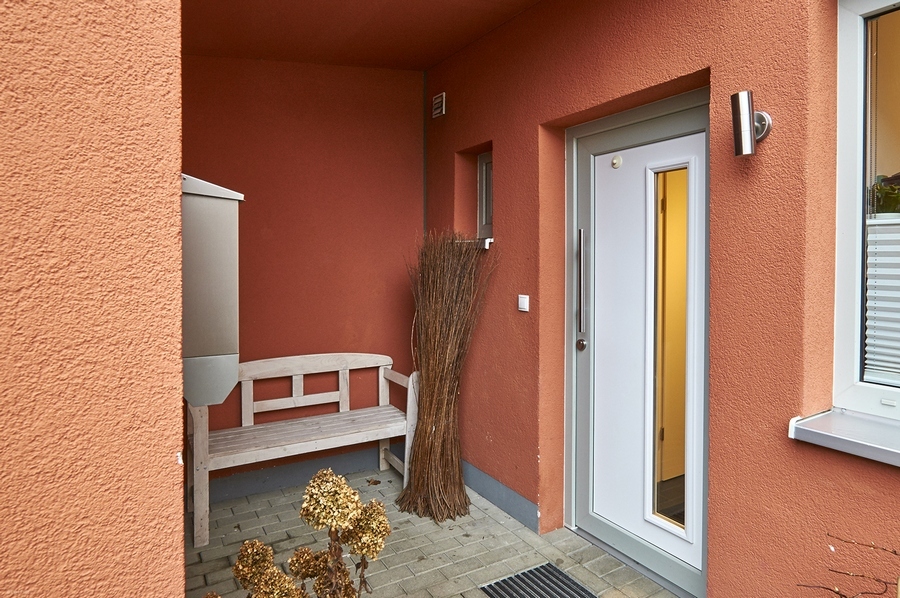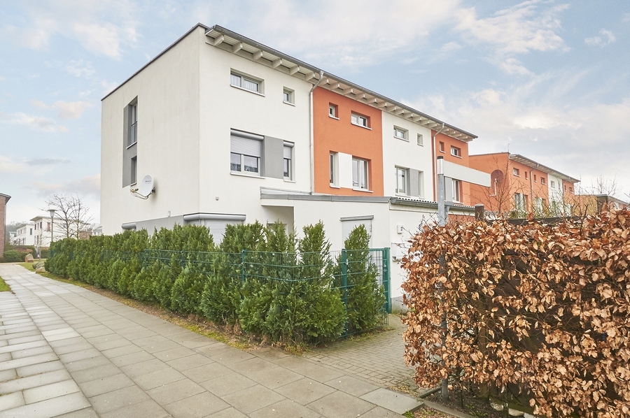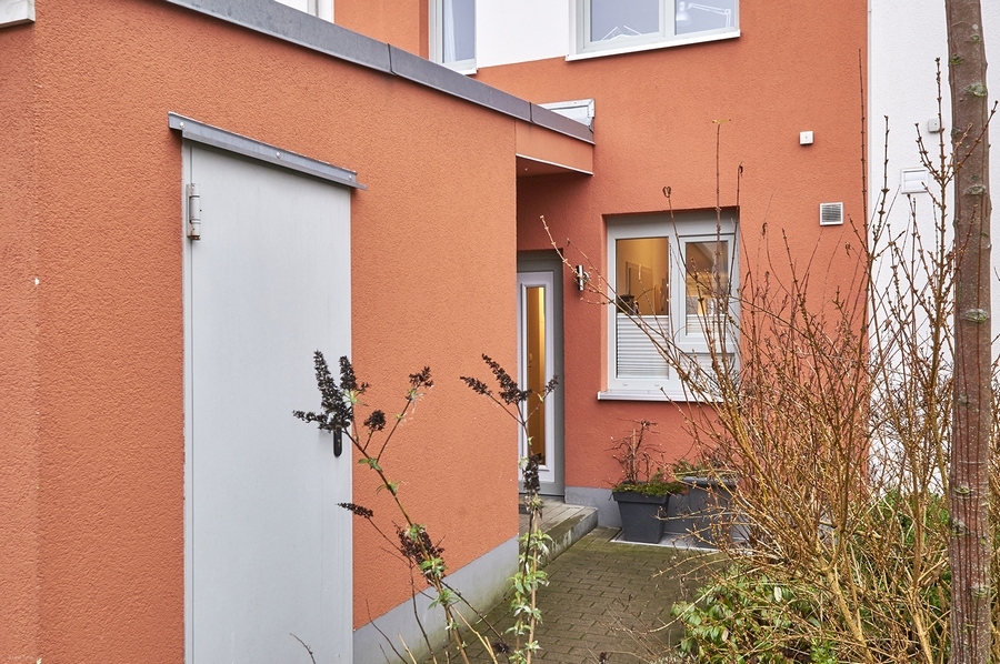 Das ca. 112m² große Grundstück (zuzügl. 50m² antlg. Carport und Gemeinschafts- flächen) ist ruhig, sonnig und nach Westen orientiert. Bei dem rückwärtigen Nachbargrundstück handelt es sich um eine öffentliche Grünfläche, so dass Ihnen "von Gegenüber" niemand ihren Garten oder auf die Terrasse sehen kann. Die Fläche zwischen Hauseingang und dem vorgebaute Fahrrad-/Abstellraum ist übedacht und bildet einen hervorragenden Wind- und Wetterschutz.