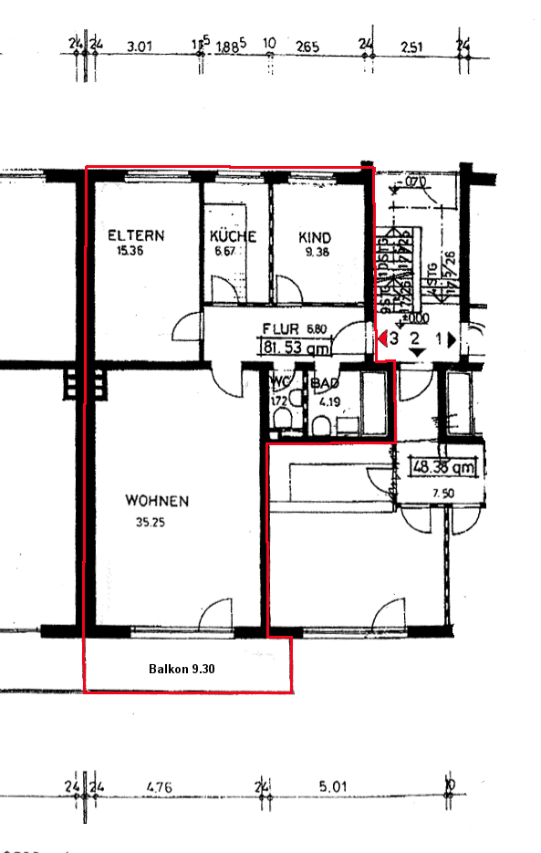 Die Wohnung verfügt über einen optimalen Raumschnitt und ist hervorragend belichtet. Vom 35m² große Wohn-/Esszimmer aus gelangt man auf den 9,3m² großen, gerade aufwendig sanierten, Südbalkon mit neuwertiger Sonnenmarkise.