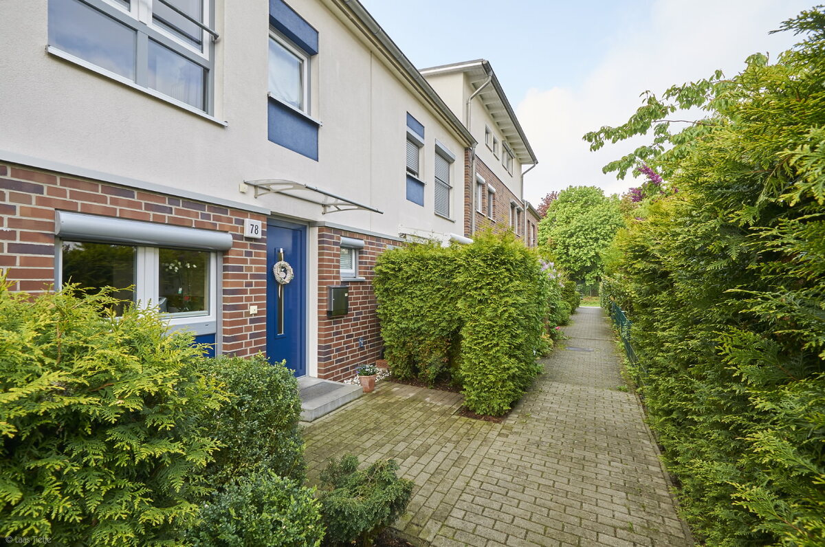 Das Objekt liegt sehr ruhig in einer kleinen Wohnstrasse des beliebten Stadtteils Rahlstedt. Die Umgebung besteht hauptsächlich aus gut gepflegten und modernen Reihenhäuser. In der Nähe befinden sich mehrere Spielplätze. Fußläufig erreichbar sind außerdem Kindergärten und Grundschulen; weiterführende Schulen, Sportvereine, Fitnessstudios und ein Schwimmbad befinden sich ebenfalls in der Gegend und sind mit dem Fahrrad schnell zu erreichen.