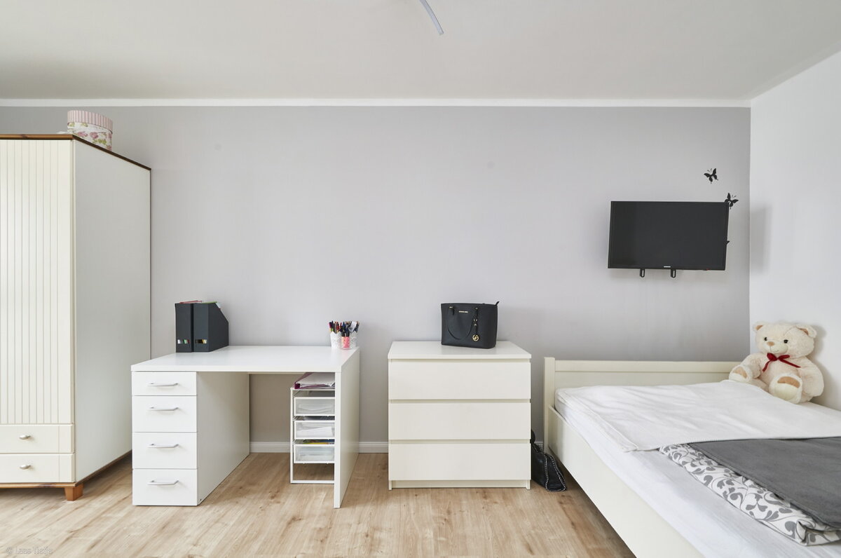 Die ca. 110m² Wohnfläche verteilen sich auf 5 Wohn-/Schlafzimmer inklusive ausgebautem Dachstudio, ein Vollbad mit Wanne und Dusche, ein modernes