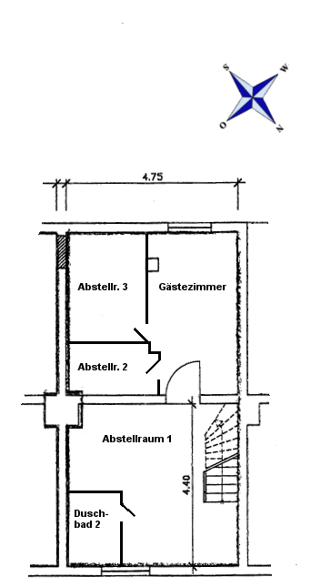 Das Raumangebot wird ergänzt durch ein wohnlich ausgebautes Tiefgeschoss (Deckenhöhe 2,50m!) mit einem zweiten Bad mit Dusche, zusätzlichem Gästezimmer und drei Abstellräumen. Ein Heizungsraum wird nicht benötigt. Es gibt eine gemeinsame Ölzentralheizung im benachbartem Nebenhaus.