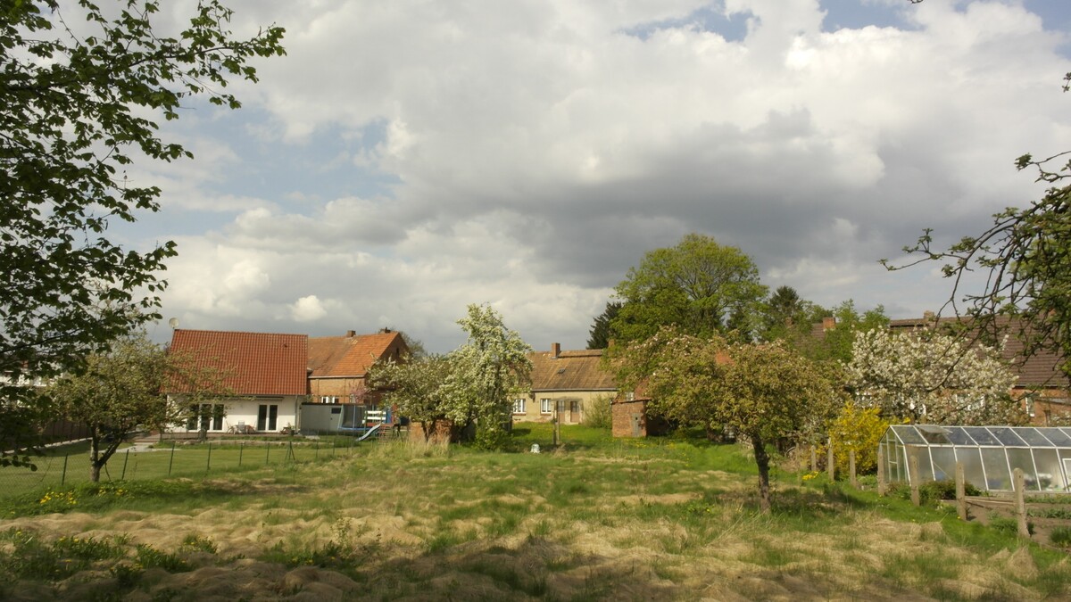 Das sehr einfache Wohnhaus wurde im Krieg zerstört, 1958 wieder aufgebaut und befindet sich weitestgehend im Originalzustand. Es verfügt über eine Grundfläche von ca. 180m² und beherbergte zwei 3-Zi.-Wohnungen im Erdgeschoss. Das Dachgeschoss ist nicht ausgebaut, der Keller ist stark durchfeuchtet. Eine Zentralheizung ist nicht vorhanden.