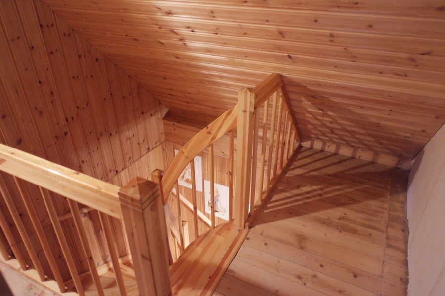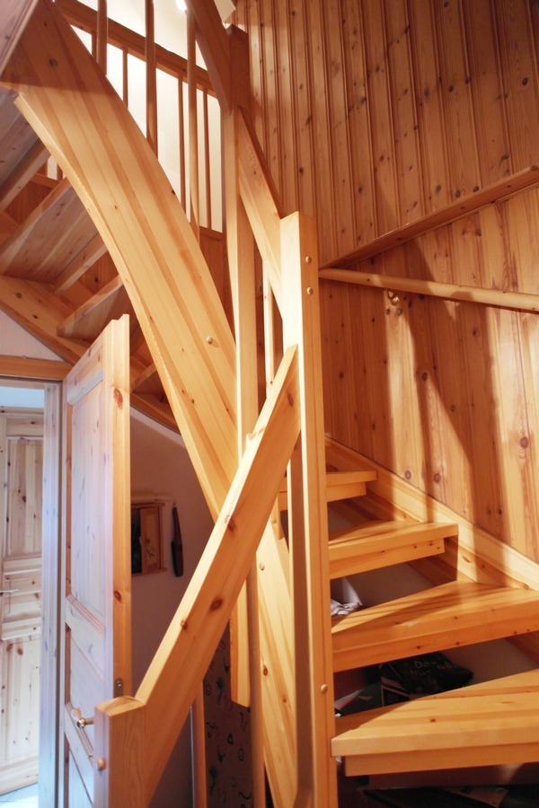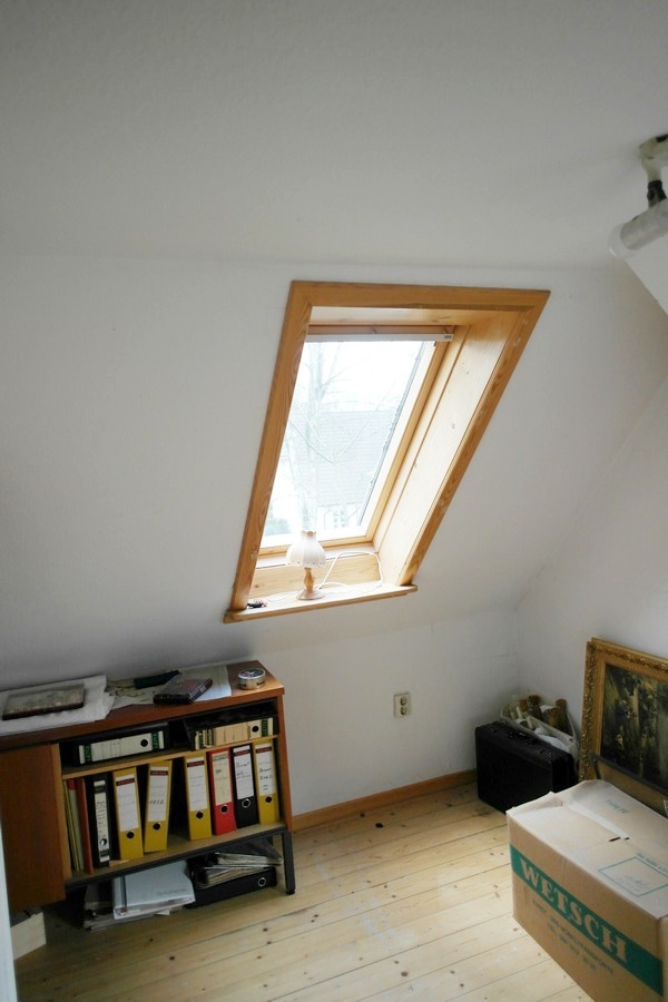 Über eine Ausschubtreppe gelangt man von der Galerie in den Spitzboden, der um 2001 bis in den Giebel gedämmt wurde.