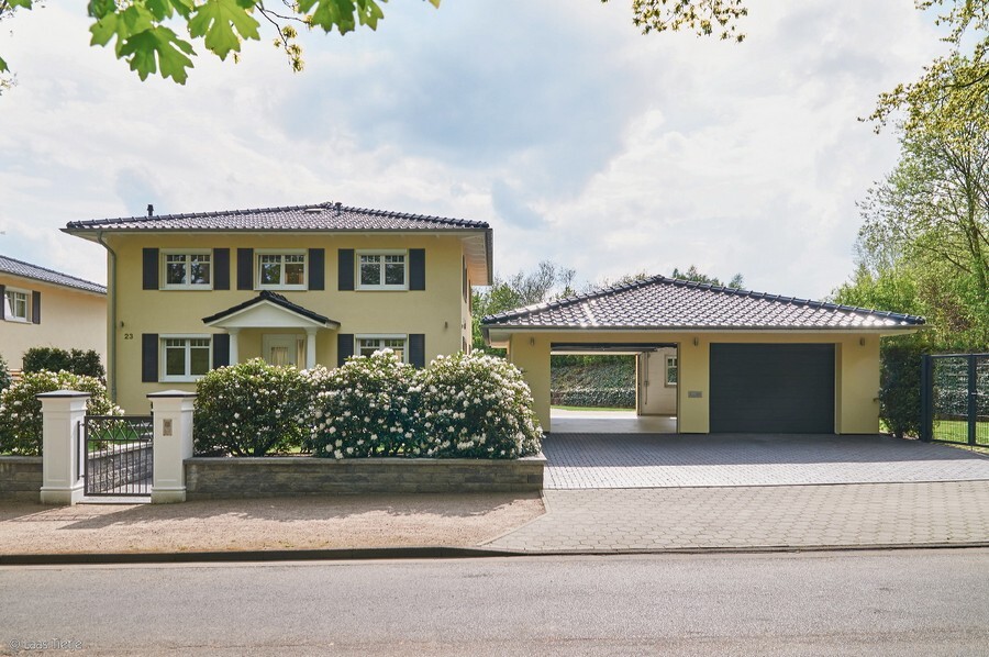 - 60m² große Doppelgarage mit 3 Toren, Nebentür + Fenster