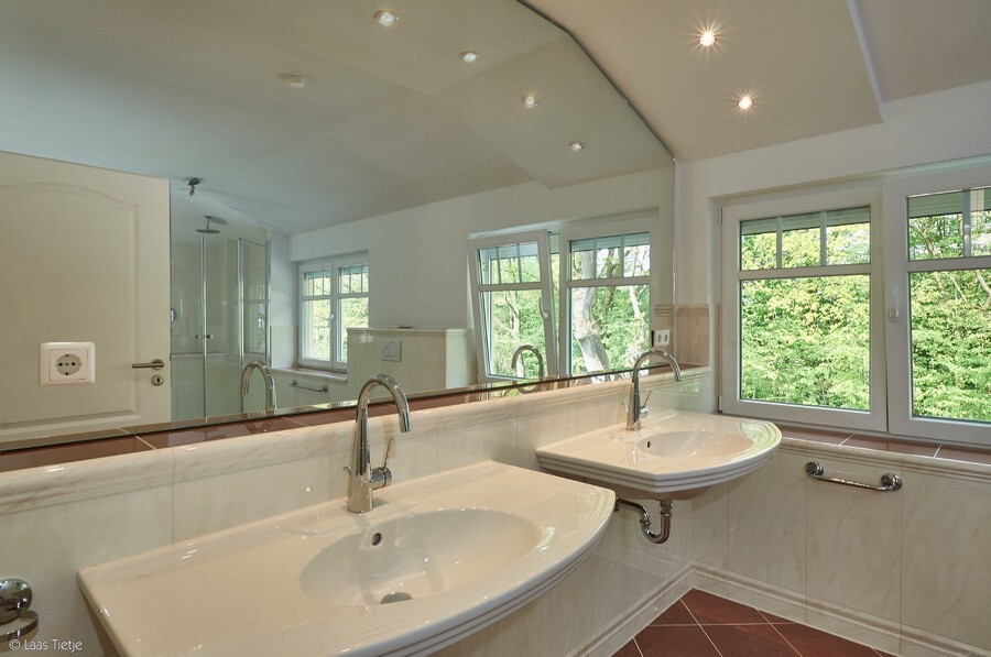 - Gäste-WC, Vollbad im Obergeschoss, Duschbad im Tiefgeschoss