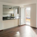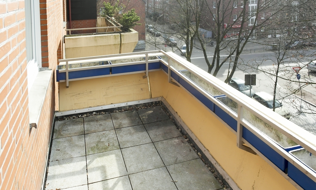 Im gesamten Wohnbereich wurde hochwertiges Laminat in Nussbaum-Optik verlegt. Der ca. 6 m² große Süd-Westbalkon ist vom Wohnzimmer aus zu betreten und bietet ausreichend Platz für einen Tisch mit 2-3 Stühlen.