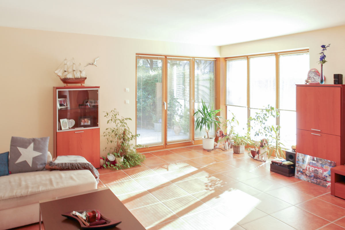 Von der Küche aus gelangt man auf eine kleinere Frühstücksterrasse, vom Wohnzimmer aus auf die ca. 30m² große Südterrasse.