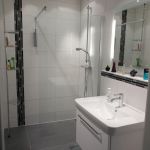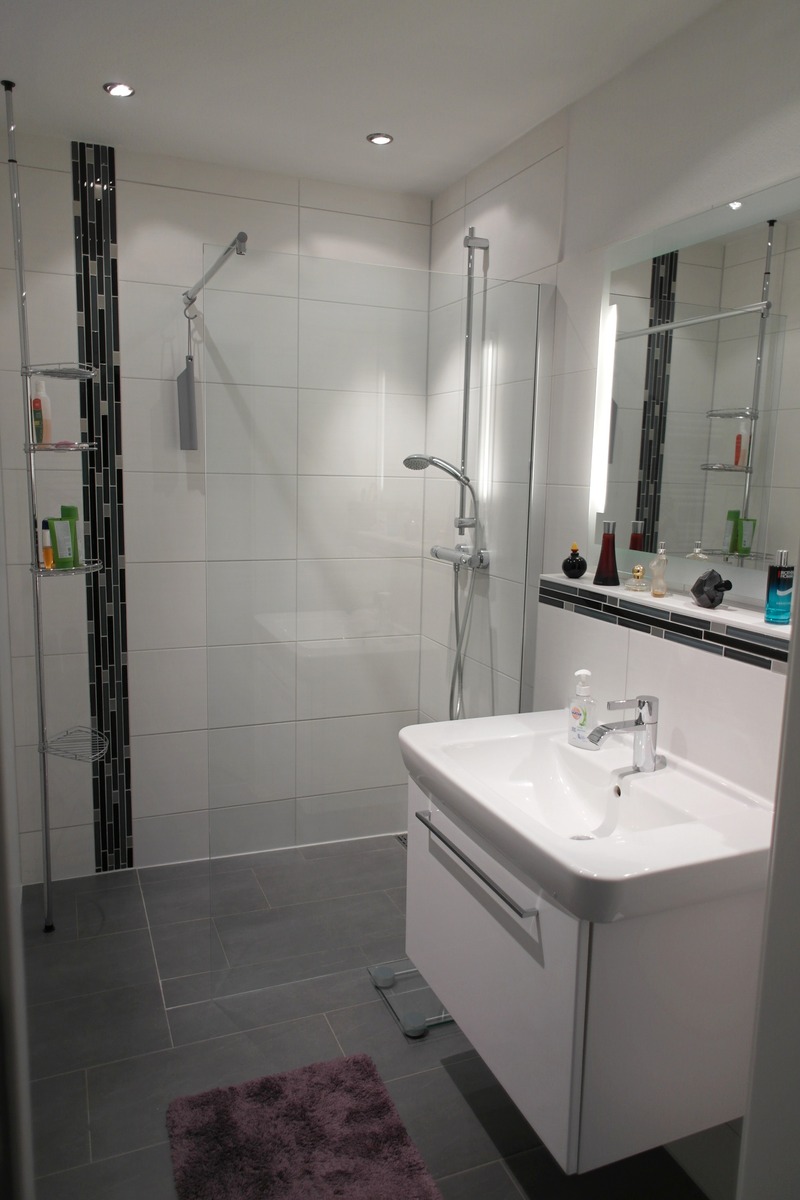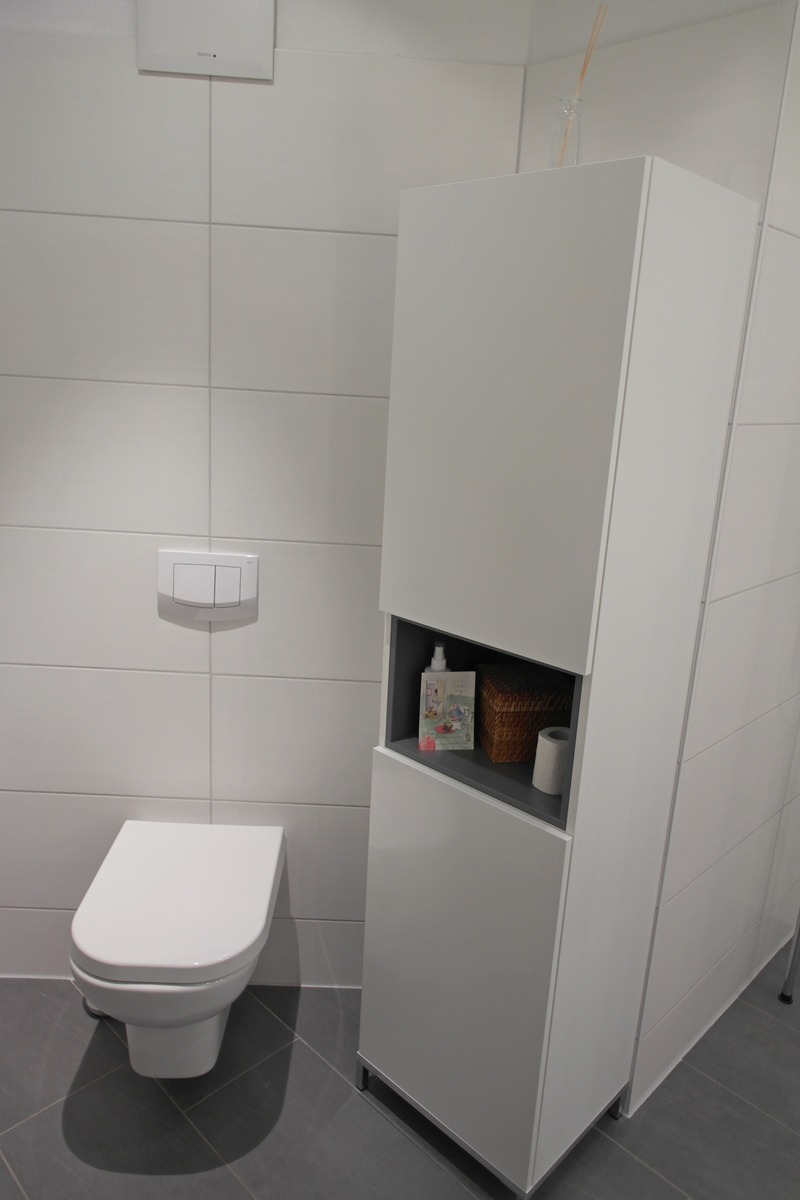 Das gut belichtete Duschbad verfügt über eine hochwertige Sanitärausstattung und Fußbodenheizung. Eine separate Abstellkammer bietet ausreichend Stauraum.