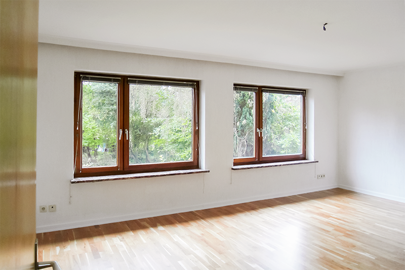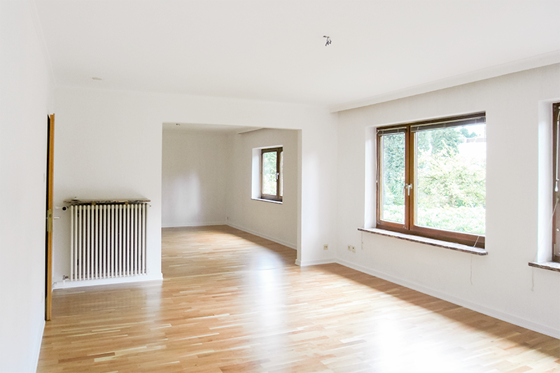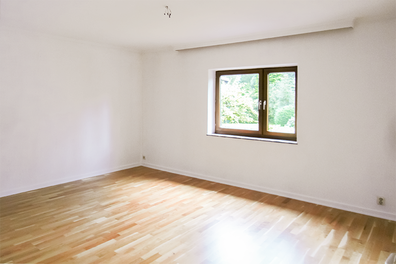 Der gesamte Wohn - und Essbereich ist mit Kirschholzparkett neu ausgelegt und mit weißen Fußleisten abgeschlossen.