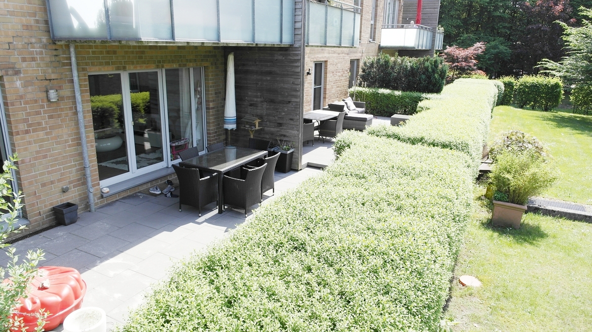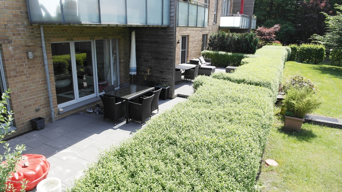 Zum Verkauf angeboten wird hier eine sehr gepflegte Eigentumswohnung mit schöner, sonniger Südterrasse. Eine Hecke trennt den Terrassenbereich von der unmittelbar anschließenden Grünanlage. Die ca. 87m² große EG-Wohnung ist Bestandteil einer im Jahre 2003 erbauten Wohnanlage, bestehend aus mehreren